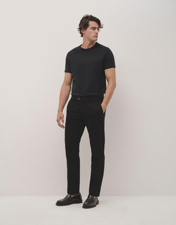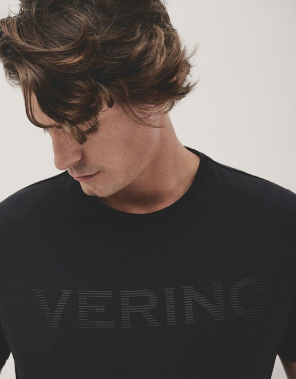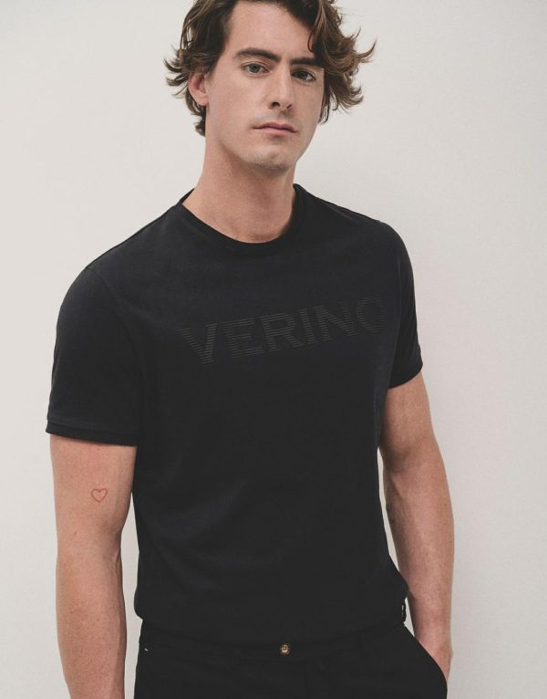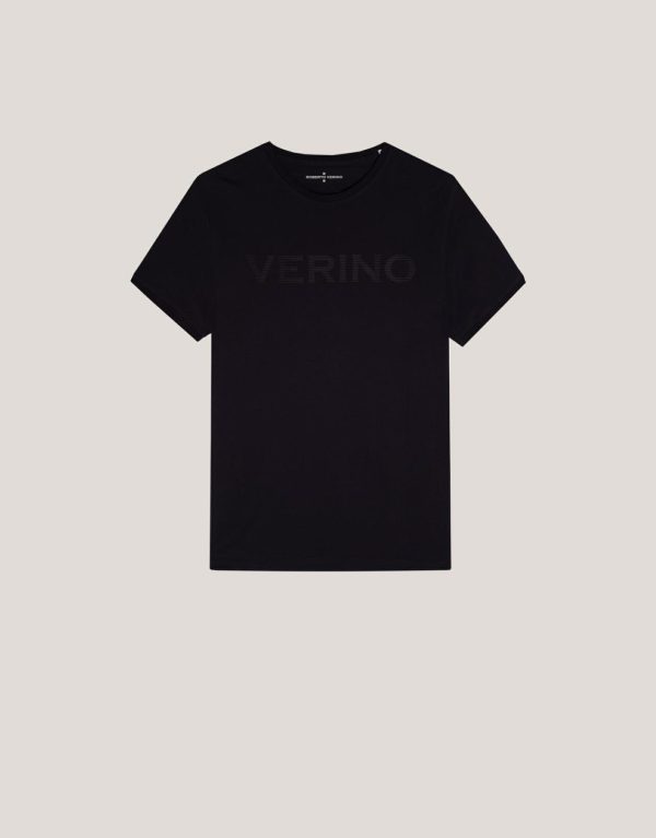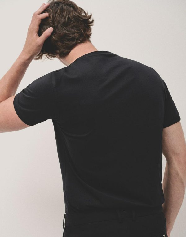 Camiseta de manga corta en algodón negro con logo engomado en relieve a tono. Escote redondo e interior con logo impreso.