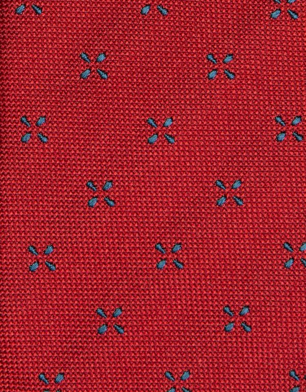 Corbata roja de seda con jacquard de flores color marino. Ancho de pala: 8 cm