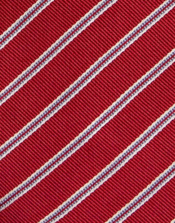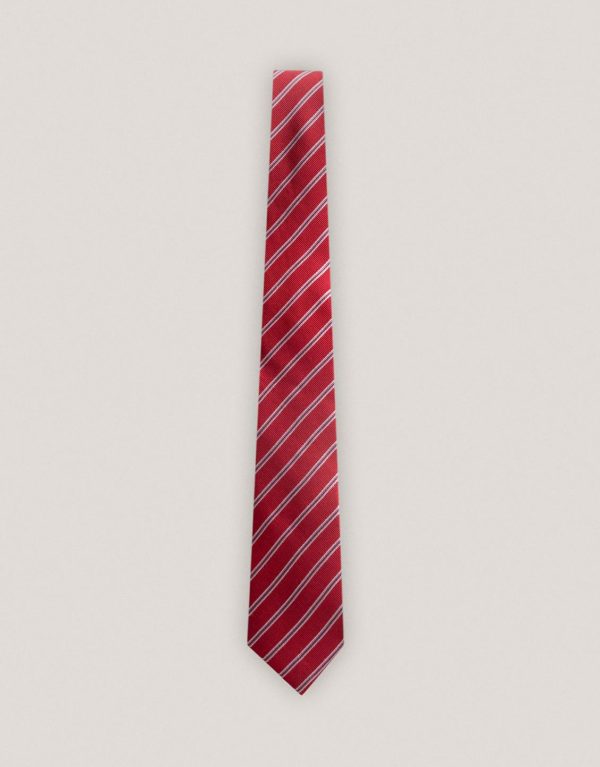 Corbata de seda color rojo con rayas blancas. Ancho de pala: 8 cm